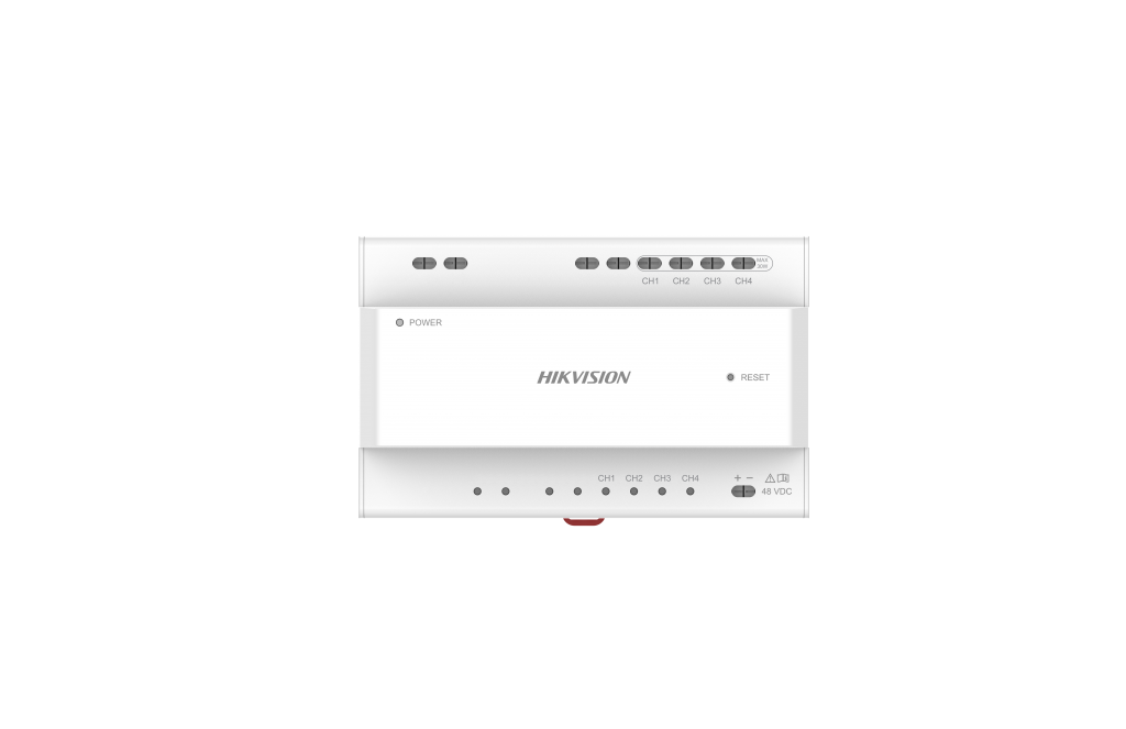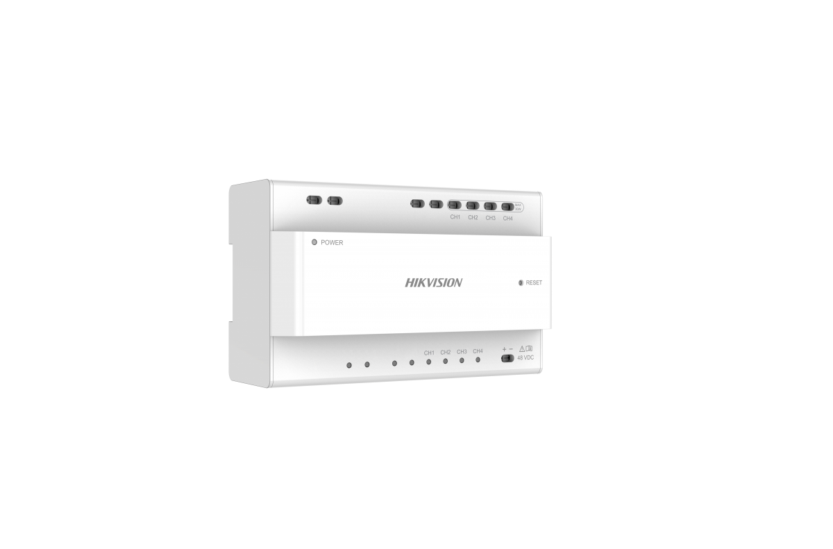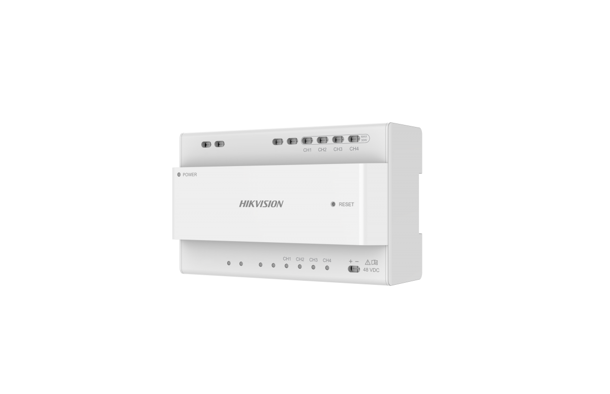 Distributor-injektor DS-KAD7040EY je určený pro napájení a rozdělení signálu u HD dvoužilových videotelefonních systémů Hikvision (řada EY). Umožňuje napojení až čtyř vstupních/příjmových stanic (dveřních tábl nebo vnitřních monitorů) skrze odpovídající 2-žilové rozhraní. Distributor také podporuje kaskádování distributorů, tím pádem lze systém rozšířit na větší počet zařízení.