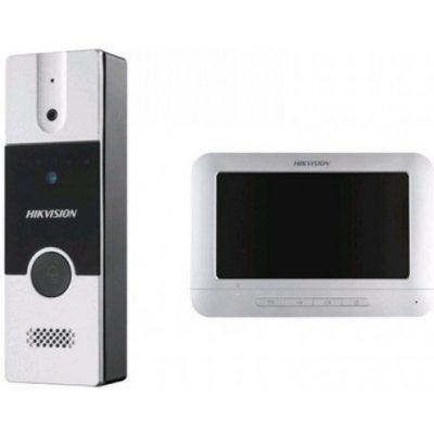 Analogová sestava video interkomu Hikvision pro 1 uživatele. Venkovní tablo s pinhole 1/2.7" CMOS kamerou 1920x1080, barevný LCD monitor 7" s rozlišením 800x480. Povrchová montáž, propojení venkovní stanice a monitoru pouze 4 vodiči, napájení 12VDC/0,5A do monitoru.