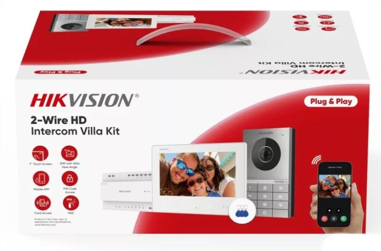 2 drátový HD audio-video kit Hikvision DS-KIS705EY pro 1 uživatele s možností komunikace na aplikaci HikConnect je ideální pro rodinné domy, vily nebo menší bytové jednotky. Nastavení adres pomocí DIP přepínačů.
