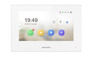 7" IP bílý bytový monitor Hikvision DS-KH6320-WTE1-W(O-STD)(Europe BV) s podporou WiFi. Kapacitní dotykový barevný TFT LCD displej, Rozlišení (1024 x 600), Podpora SD karty až 32GB, Napájení PoE nebo 12VDC...