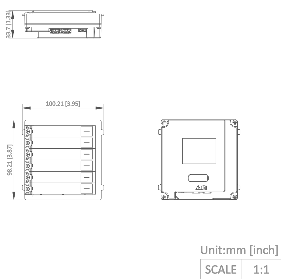Krytí modulu IP65. Rozměry: 98,2x100,2x33,7 mm, pracovní teplota -40 až 55°C.