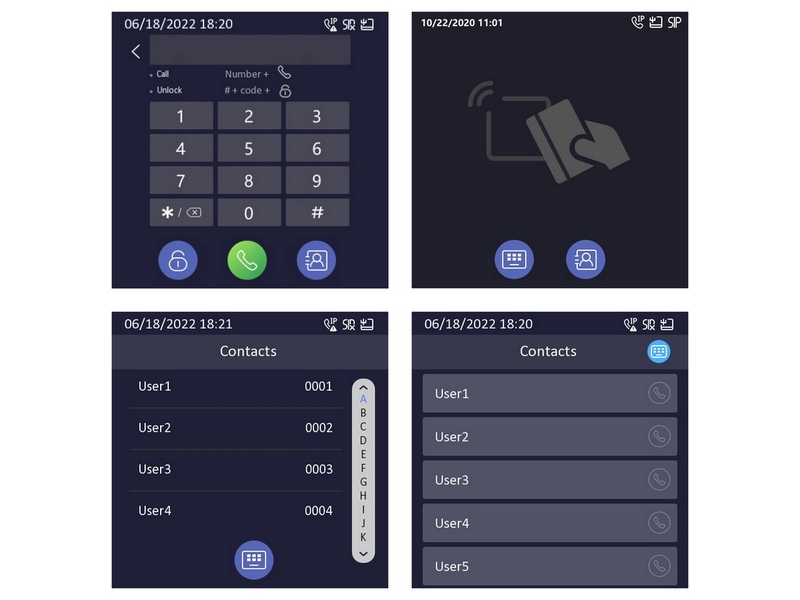 Modul zobrazuje vytáčená čísla, seznam kontaktů, lze nastavit virtuální tlačítka a umožňuje odemykání PIN kódem nebo kartou. Nechybí zabudovaný bzučák.