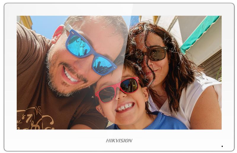 7" IP bílý bytový monitor Hikvision DS-KH6350-WTE1 s Wi-Fi konektivitou, PoE a dotykovým TFT LCD displejem o rozlišení 1024 x 600, vestavěným všesměrovým mikrofonem a reproduktorem. Povrchová montáž.