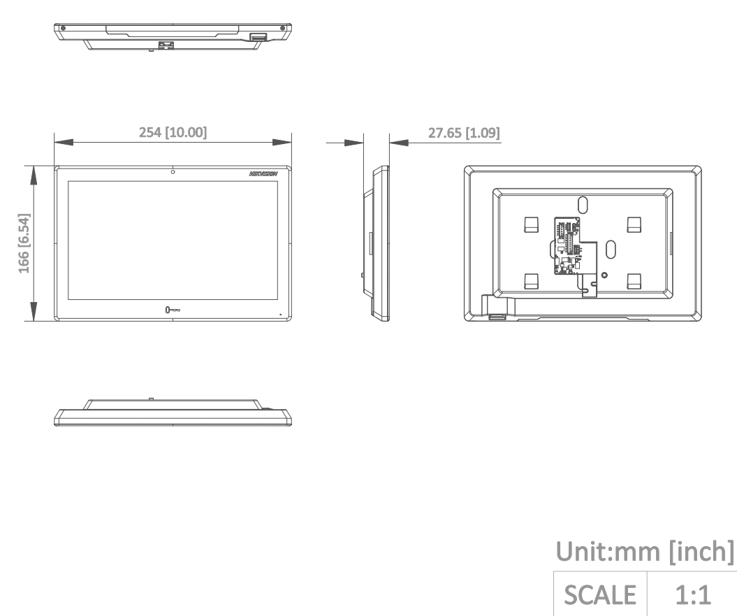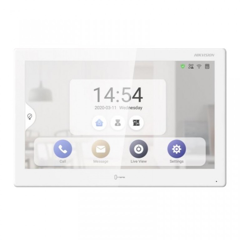 10,1" vnitřní video stanice Hikvision DS-KH9510-WTE1(B) s Androidem 10 a dotykovým displejem pro videotelefony s maximálním rozlišením 1024 x 600. Systémová paměť 1GB, Flash: 8GM Emmc. Monitor má zabudovaný mikrofón, reproduktor. Monitor disponuje portem pro síť RJ45, RS-485, Alarm IN 8x, OUT 2x, Button 1x, Tamper: 1x, Debugging port: 1x. Síťove rozhraní: 10/100Mbps + Wi-Fi 802.11.. Napájení monitoru je 12V DC. Rozměry jsou 254 x 166 x 26,65mm. Provozní teplota -10°C až do +50°C. Lze rozšířit až o 16 podružných monitorů (jakékoliv B verze).