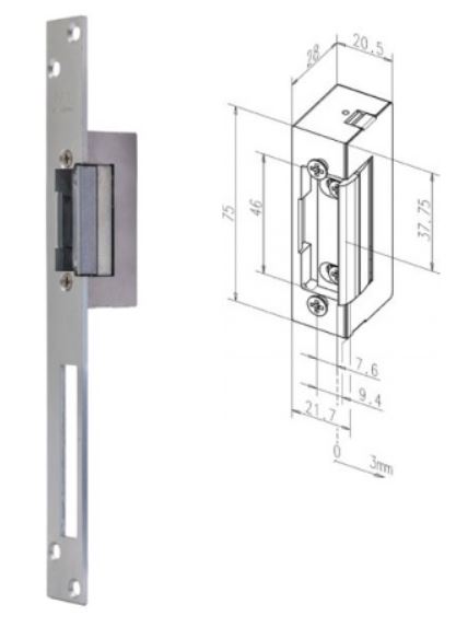Nízkoodběrový elektrický otvírač FAB PROFI s mechanickým blokováním , napájení 12VDC, odběr 230mA, rozměry 75 x 28 x 20mm.