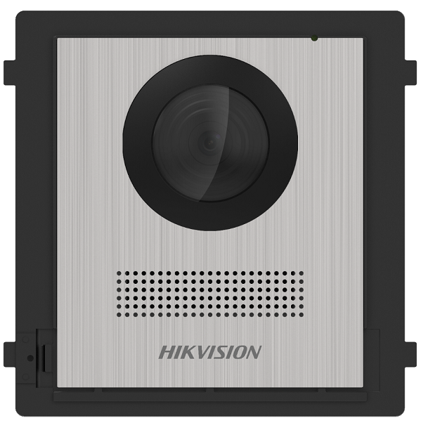 IP modulární nerezový dveřní video intercom Hikvision DS-KD8003-IME1´(B)/NS s 2MPx fisheye barevnou kamerou a IR přísvitem. Maximální rozlišení kamery činní 1920x1080. Intercom dále disponuje zabudovaným reproduktorem a mikrofonem. Tento model také umožňuje napájet např. elektrický otvírač dveří.