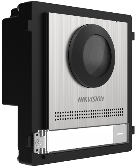 IP modulární nerezový dveřní video intercom Hikvision DS-KD8003-IME1´(B)/S s 2MPx fisheye barevnou kamerou a IR přísvitem. Maximální rozlišení kamery činní 1920x1080. Tento model disponuje jedním tlačítkem. Intercom dále disponuje zabudovaným reproduktorem a mikrofonem. Model také umožňuje napájet např. elektrický otvírač dveří.