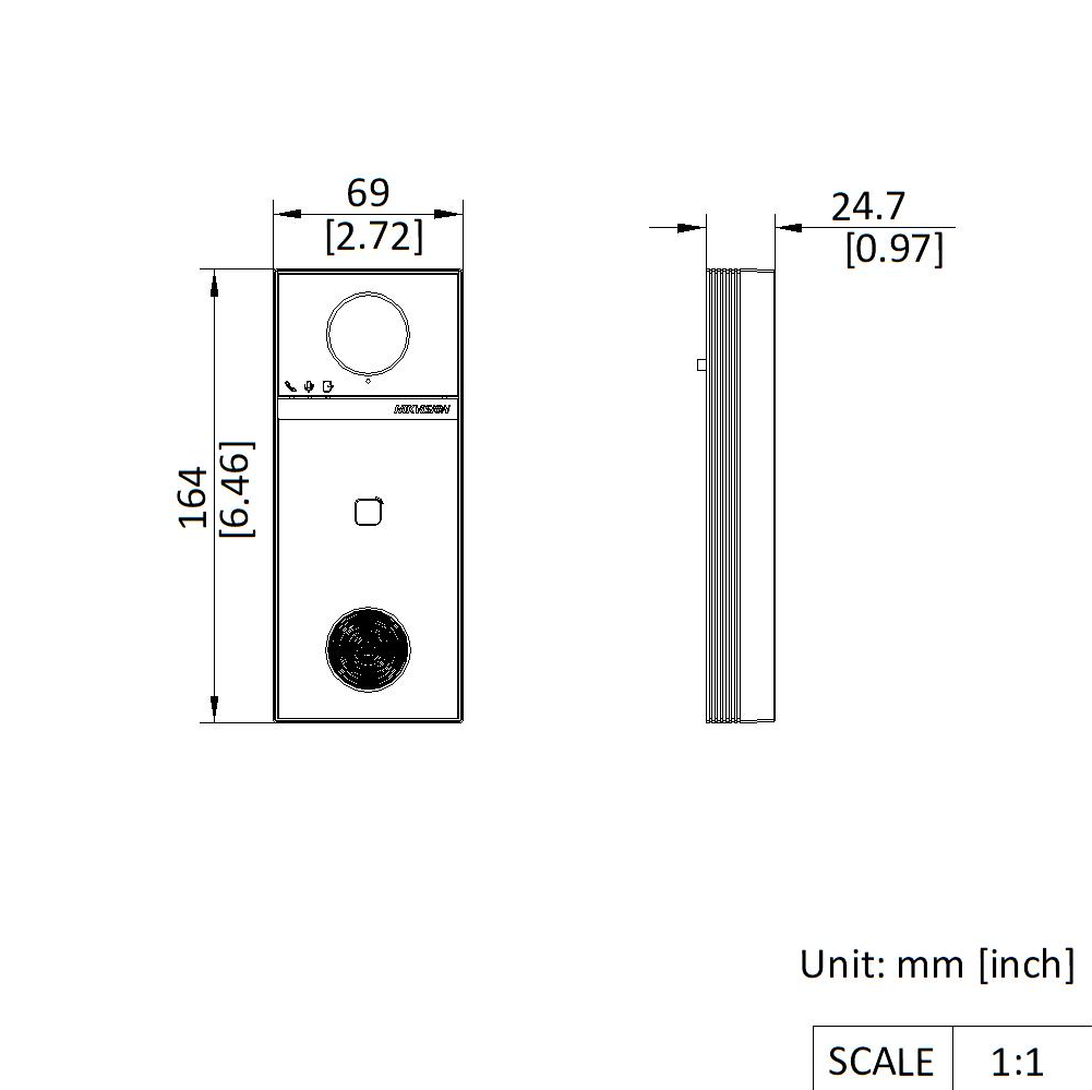 IP videovrátník DS-KV6114-MWBE1 určený pro rodinné domy nebo menší objekty. Je to venkovní "villa" jednotka s kamerou, čtečkou karet a funkcí odemčení dveří - tedy moderní domovní telefon / dveřní videotelefon.