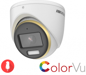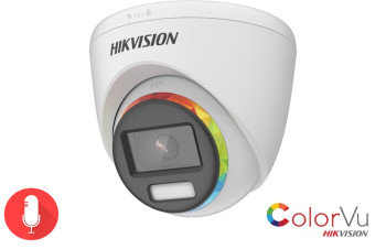 2MPx TVI ColorVu hybridní venkovní turret kamera Hikvision s fixním objektivem a ohniskovou vzdáleností 2.8mm. 0,0005lux, 1920 x 1080 @25fps. 120dB WDR, 3D DNR, BLC, HLC. IR a bílý LED až do 40m. Mikrofon,...