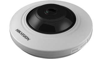5MPx IP vnitřní Fisheye kamera Hikvision s 1,05mm objektivem, CMOS 1/2.7" 0,017lux, rozlišení 2560 × 1920@25fps. H.265+ , 120dB WDR, IR přísvit do 8m. slot SD kartu do 256Gb, mikrofon a alarm a audio vstupy...