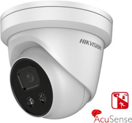 2MPx IP TURRET AcuSense kamera (Powered by Darkfighter), objektiv 2.8mm, 1920x1080@25fps, IR do 30m, 120dB WDR, 3D DNR, IR CUT, citlivost 0.002Lux @(F1.2;AGC ON), komprese až H.265+, filtr falešných poplachů...