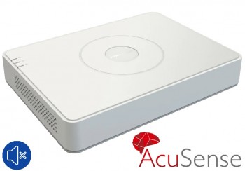 Síťový AcuSense videorekordér pro až 4 IP kamery s max 12Mpx, datová propustnost 40/80Mbs, 1x HDD SATA až 16TB, 1Gbps, 1x VGA a 1x HDMI, 2x USB 2.0, alarm a audio I/O, 12V DC, 10°C až do +55°C