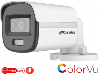 2MPx TVI ColorVu hybridní venkovní bullet kamera Hikvision s fixním objektivem a ohniskovou vzdáleností 2.8mm. 0,0005lux, 1920 x 1080 @25fps. 120dB WDR, 3D DNR, BLC, HLC. IR až do 30 m a bílý LED až do 20m....