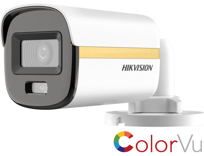 2MPx multiformátová 4v1 ColorVu venkovní bullet kamera Hikvision DS-2CE10DF3T-F s fixním objektivem a ohniskovou vzdáleností 3.6 mm. Kamera je vybavena snímačem s ultravysokou citlivostí, který zajišťuje kvalitní obraz i při zhoršených světelných podmínkách. Kamera disponuje vysokou fyzickou kompenzací protisvětla včetně mnoha dalších podpůrných funkcí pro zlepšení kvality obrazu včetně bílého LED přísvitu s dosahem až do 20 metrů.