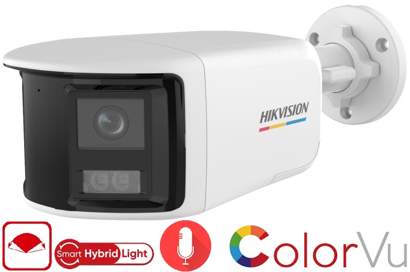 3K hybridní ColorVu bullet kamera Hikvision DS-2CE12KF3TP-DLS s duálním fixním objektivem a ohniskovou vzdáleností 2.8mm zachycující 180° obraz. Kamera je vybavena snímačem s ultravysokou citlivostí, který zajišťuje kvalitní obraz i při zhoršených světelných podmínkách. Kamera disponuje vysokou fyzickou kompenzací protisvětla včetně mnoha dalších podpůrných funkcí pro zlepšení kvality obrazu včetně bílého LED i IR přísvitu s dosahem až do 40 metrů.