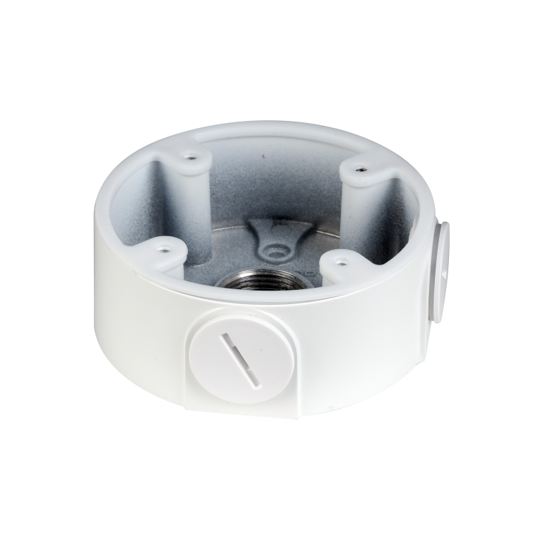 Montážní box pro Dome kamery Dahua HDW. Kabel je protažen nahoru nebo do strany, průměr 96,7mm, výška 37,2mm, hmotnost 170g. Max zátěž 3kg, použitelný v kombinaci s držákem na sloup PFA152-E.