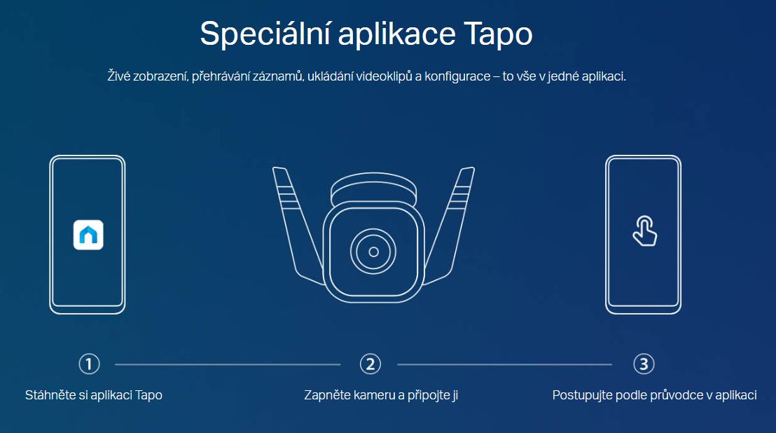 Síťové připojení je zajištěno pomocí portu RJ45 nebo Wi-Fi až 150Mbps(802.11n),(2.4 GHz). Mobilní monitoring je umožněn přes aplikaci Tapo. Kamera disponuje resetovacím tlačítkem. Ochranu zařízení zajišťuje krytí IP66. Napájení kamery je pomocí 9V DC. Provozní teplota -20°C až do +45°C.