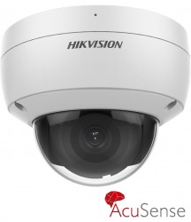 2MPx IP venkovní AcuSense Dome kamera Hikvision s monofokálním objektivem 2.8mm. CMOS 1/2.8" s vysokou citlivostí 0,005lux, 1920 x 1080 při 25fps, H.265+/H.265/H.264+/H.264/MJPEG. 120dB WDR, 3D DNR, BLC, HLC...
