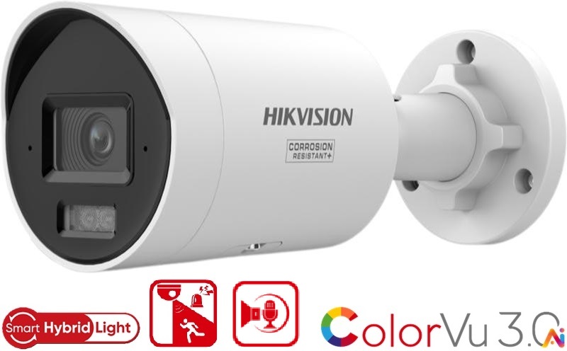 8MPx IP ColorVu AI hybridní venkovní bullet kamera Hikvision DS-2CD2087G3-LI2UY/SL s fixním objektivem a ohniskovou vzdáleností 4mm. Kamera je vybavena snímačem s ultravysokou citlivostí, který zajišťuje kvalitní obraz i při zhoršených světelných podmínkách. Kamera disponuje vysokou fyzickou kompenzací protisvětla včetně mnoha dalších podpůrných funkcí pro zlepšení kvality obrazu včetně bílého LED i IR přísvitu s dosahem až do 40 metrů.