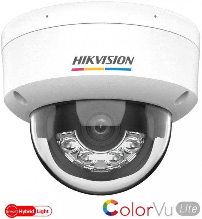 2MPx IP ColorVu hybridní venkovní Dome kamera Hikvision DS-2CD1127G2H-LIU s monofokálním objektivem a ohniskovou vzdáleností 4mm. Kamera je vybavena snímačem CMOS 1/2.8" a disponuje ultravysokou citlivostí 0,0005 lux a maximálním rozlišením 1920 x 1080 při 25fps. Moderní video komprese - H.265+/H.265/H.264+/H.264. Kamera disponuje digitálním WDR a podporuje řadu funkcí - 3D DNR, BLC, HLC. Přísvit bílým i IR světlem dosahuje vzdálenosti až do 30m. Tento model je vybavený vestavěným mikrofonem Síťové připojení je zajištěno pomocí portu RJ45 až do rychlosti 100Mbps, nechybí ani podpora protokolu ONVIF a případný mobilní monitoring je umožněn přes aplikaci Hik-Connect. Ochranu zařízení zajišťuje krytí IP67 a stupeň odolnosti IK08. Napájení kamery je pomocí 12V DC/PoE. Provozní teplota -30°C až do +60°C.