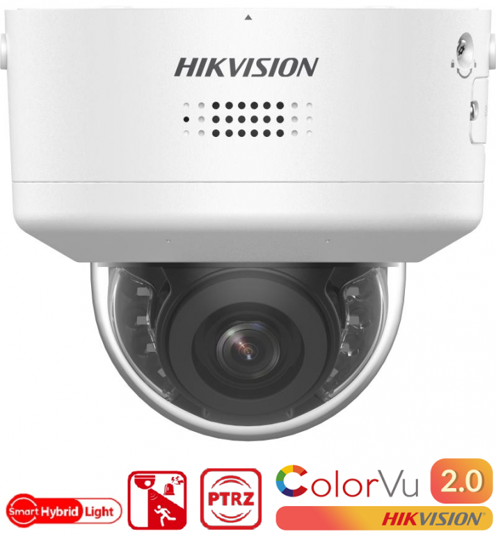 4MPx IP ColorVu hybridní venkovní dome kamera Hikvision DS-2CD3746G2H-LIZSU/SLPTRZ s varifokálním objektivem a ohniskovou vzdáleností 2.7 - 13,5mm. Kamera je vybavena snímačem s vysokou citlivostí, který zajišťuje kvalitní obraz i při zhoršených světelných podmínkách. Kamera disponuje vysokou fyzickou kompenzací protisvětla včetně mnoha dalších podpůrných funkcí pro zlepšení kvality obrazu včetně bílého LED i IR přísvitu s dosahem až do 40 metrů.