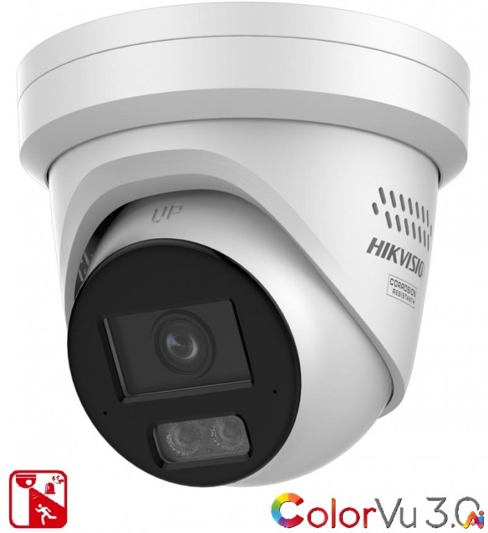 4MPx IP ColorVu AI hybridní venkovní Trurret kamera Hikvision DS-2CD2347G3-LIS2UY/SL s fixním objektivem a ohniskovou vzdáleností 2.8mm. Kamera je vybavena snímačem s ultravysokou citlivostí, který zajišťuje kvalitní obraz i při zhoršených světelných podmínkách. Kamera disponuje vysokou fyzickou kompenzací protisvětla včetně mnoha dalších podpůrných funkcí pro zlepšení kvality obrazu včetně bílého LED i IR přísvitu s dosahem až do 30 metrů.