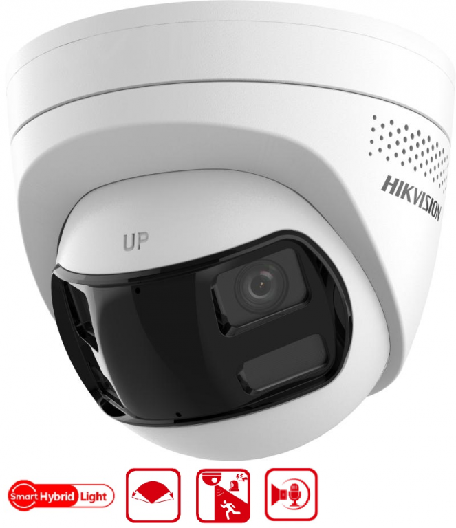 8MPx IP hybridní venkovní turret Panoramic kamera Hikvision DS-2CD3381G2P-LIUF/SL s 2x monofokálním objektivem a ohniskovou vzdáleností 2mm. Kamera je vybavena snímačem s vysokou citlivostí, který zajišťuje kvalitní obraz i při zhoršených světelných podmínkách. Kamera disponuje vysokou fyzickou kompenzací protisvětla včetně mnoha dalších podpůrných funkcí pro zlepšení kvality obrazu včetně bílého LED a IR přísvitu s dosahem až do 30 metrů.