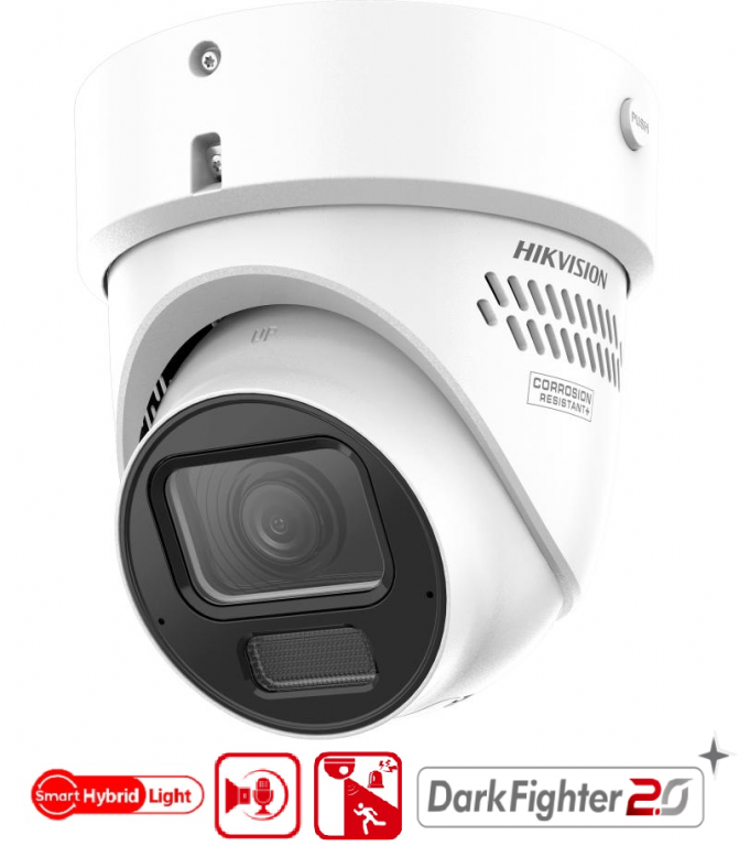 8MPx IP hybridní Darkfighter 2.0 venkovní turret kamera Hikvision DS-2CD3H86G3-LIZSUY/SL s varifokálním objektivem a ohniskovou vzdáleností 2.7-13.5 mm. Kamera je vybavena snímačem s vysokou citlivostí, který zajišťuje kvalitní obraz i při zhoršených světelných podmínkách. Kamera disponuje vysokou fyzickou kompenzací protisvětla včetně mnoha dalších podpůrných funkcí pro zlepšení kvality obrazu včetně bílého LED a IR přísvitu s dosahem až do 40 metrů.