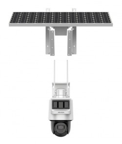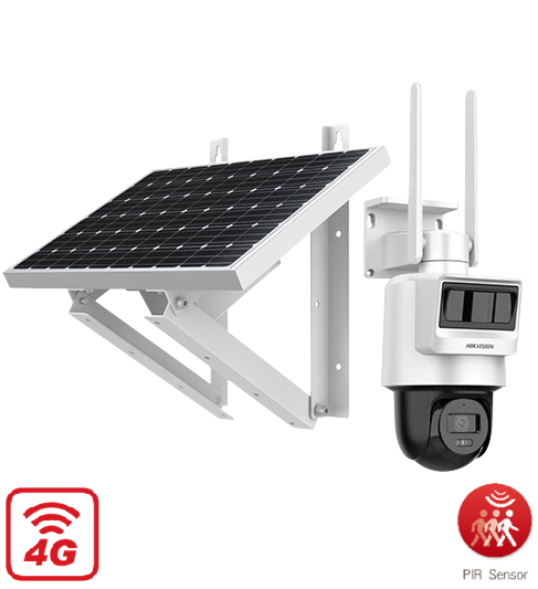 4MPx IP solární PT kamera Hikvision DS-2DE2C400IWG-K/4G/C05S10 s fixním objektivem a ohniskovou vzdáleností 2,8 mm. Kamera nabízí 4G LTE připojení, je vybavena vestavěným mikrofonem a reproduktorem a díky PIR čidlu a radaru umožňuje vyšší přesnost detekce.