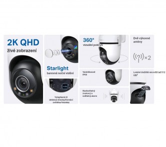 4MPx IP venkovní PT Wi-Fi kamera Tapo C520WS od výrobce TP-Link s monofokálním objektivem a ohniskovou vzdáleností 3,18mm. Kamera je vybavena snímačem CMOS 1/3" a maximálním rozlišením 2560 x 1440 při 25fps. Video komprese - H.264. Kamera podporuje řadu funkcí: detekce osob, notifikace na smartphone, sledování objektu, videodetekce pohybu. IR LED přísvit dosahuje vzdálenosti až do 30m. Tento model je vybavený slotem na MicroSD kartu až do kapacity 512Gb, dále tato kamera disponuje vestaveným mikrofonem a reproduktorem. Síťové připojení je zajištěno pomocí Wi-Fi 2.4GHz(802.11b/g/n). Mobilní monitoring je umožněn přes aplikaci Tapo. Kamera disponuje resetovacím tlačítkem. Ochranu zařízení zajišťuje krytí IP66. Napájení kamery je pomocí 9V DC. Provozní teplota -30°C až do +60°C.