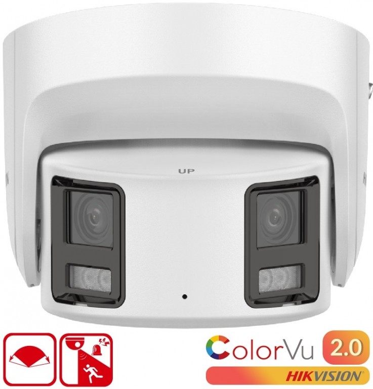 DOPRODEJ! 8MPx IP ColorVu venkovní panoramatická kamera Hikvision DS-2CD3387G2P-LSU/SL s 2x fixním objektivem a ohniskovou vzdáleností 4mm. Kamera je vybavena snímačem s ultravysokou citlivostí, který zajišťuje kvalitní obraz i při zhoršených světelných podmínkách. Kamera disponuje vysokou fyzickou kompenzací protisvětla včetně mnoha dalších podpůrných funkcí pro zlepšení kvality obrazu včetně bílého LED přísvitu s dosahem až 40 metrů.