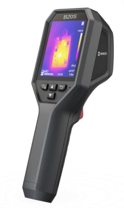 Termální ruční kamera Hikvision Hikmicro B20S, navržena pro průmyslové kontroly (skenování elektrického vybavení, strojů a dalšího majetku) s teplotním rozsahem -20°C až +550°C. Zařízení je vybaveno 3,2" LCD displejem o rozlišení 480 x 640 bodů, měření infračerveným senzorem s rozlišením 256x192 a pro viditelné spektrum rozlišením 2 MPx. Termokamera disponuje funkcí automatického vyhodnocení nejteplejšího, nejstudenějšího bodu nebo uživatelského bodu. Dobíjecí Li-ion baterie zajistí výdrž až 6 hodin na jedno nabití (nabíjení přes USB-C). Ochranu zařízení zajišťuje stupeň krytí IP54. Provozní teplota -10°C až 50°C.