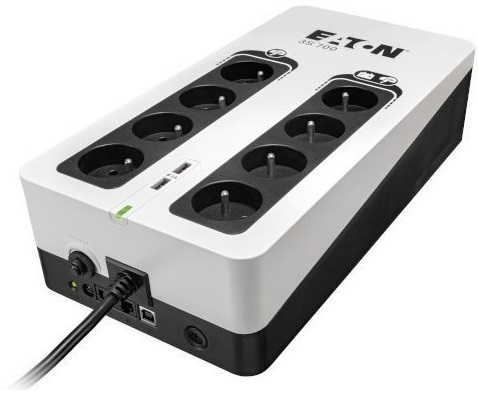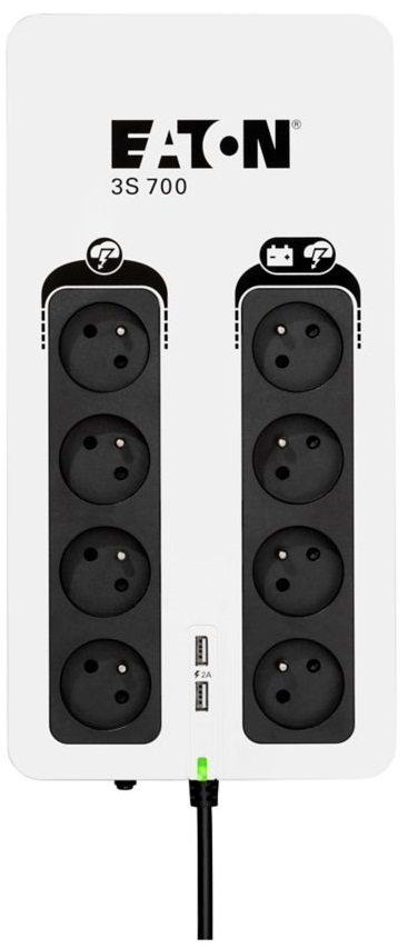 Záložní zdroj 3S700F od výrobce Eaton zajišťuje pokročilou ochranu vašich domácích i kancelářských spotřebičů v případě výskytu nežádoucích jevů a událostí, jako jsou bouřky, přepětí v síti či poruchy a živelné události. Při úplném výpadku poskytuje UPS záložní napájení z baterie až čtzřem z osmi připojitelných zařízení. Baterie se trvale dobíjí a UPS lze nastartovat i bez napájení z elektrorozvodné sítě (studený start). UPS lze díky USB rozhraní snadno zpravovat z počítače. Kompaktní a atraktivní design dokonale zapadne do každého moderního obytného nebo kancelářského prostředí. Model dále disponuje systémem pro montáž na stěnu.