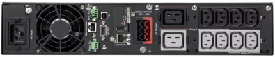 - Komunikační porty: 1x USB typ B, 1x sériový port RS-232, 1x svorkovnice pro dálkové zapínání/vypínání, 1x svorkovnice pro dálkové odstavení, 1x svorkovnice pro výstupní relé, 1x RJ-45, 1x USB-A, 1x microUSB