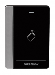 Hikvision čtečka 125kHz EM karet a tagů s povrchovou montáží, napájení 12VDC, odběr nax. 150mA, čtecí oblast max. 50mm, výstup wiegand 26/34bit, bzučák, LED indikátor, IP65, pracovní teplota -20°až +65°C,...
