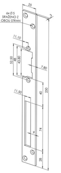 Dlouhá rovná pozinkovaná lišta LR0 pro el. otvírače FAB. Rozměry: 250x25x3 mm