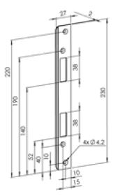 Nerezová rovná lišta LRS pro samozamykací zámky FAB. Rozměry:230x27x2 mm