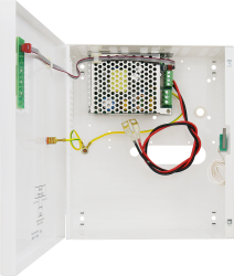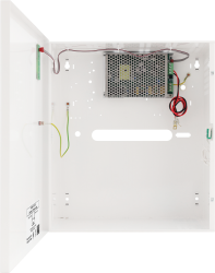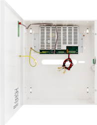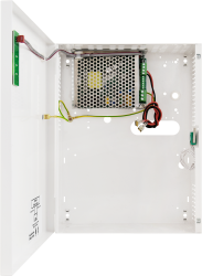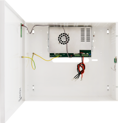 Záložní impulsní zdroj 13,8V/2A s prostorem pro AKU 7Ah. Ochrany SCP,OLP, OVP, UVP, tamper proti otevření skříně. Optická LED signalizace (napájení, výstup, AKU). Krytí IP20