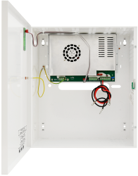 Záložní impulsní zdroj 27,6V/10A s prostorem pro AKU 2x40Ah. Ochrany SCP,OLP, OVP, UVP, tamper proti otevření skříně. Optická LED signalizace (napájení, výstup, AKU). Krytí IP20. Rozměry: 460x390x173 mm