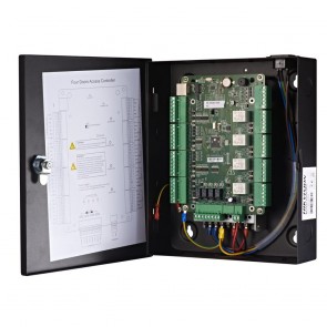 Přístupový kontrolér pro 4 dveře (pouze jednostranně) s ethernet rozhraním , v kovovém boxu s nezálohovaným zdrojem 100-240VAC/12VDC 8,5A