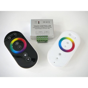 LED světelných zdrojů. 6 tlačítkový + 1 dotykové kolečko - lze s ním nastavit jas, statické barevné volby a různé dynamické změny světelných efektů. Ovládání je radiofrekvenční, není nutná přímá viditelnost na přijímač ovladačem. Programy a ovládání: 60 barevných odstínů na dotkovém kolečku + 6 tlačítek pro nastavování jasu,rychlosti a 11 přednastavených programů (7 přednastavených barev, přepínání 3 nebo 7 barev, prolínání 3 nebo 7 barev, možnost nastavení rychlosti a intenzity jasu)