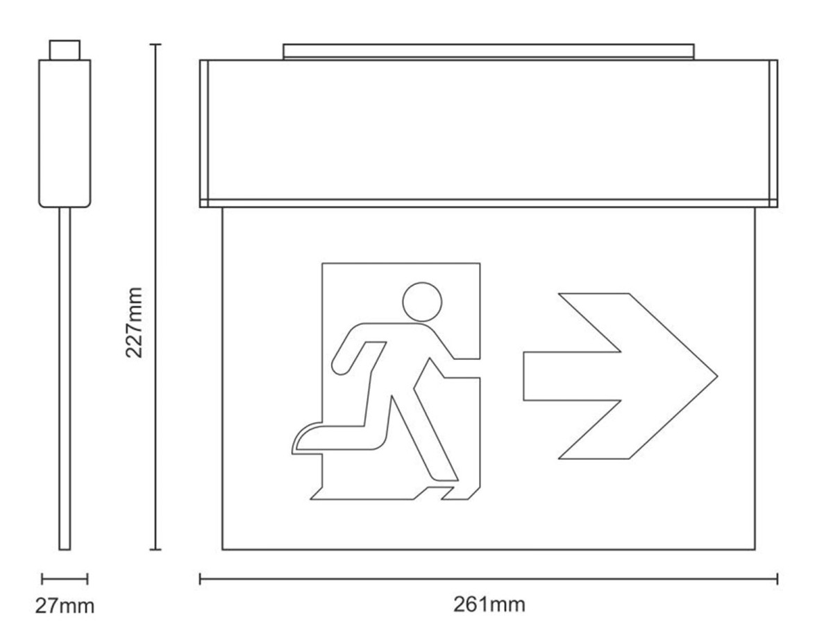 LED nouzové svítidlo, 100-240VAC/2W, 30lm, studená bílá, rozměry 261x227x27 mm, svícení po výpadku proudu 3 hodiny