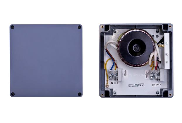 Napájecí zdroj PSACH01244 pro 1 otáčecí kameru s krytem ABS disponuje vstupním napětím 230VAC/50Hz a výstupním napětím 1x4A/24VAC nebo 27VAC. Ochrana zařízení je SCP, OLP*, tamper (otevření skříně). Rozměry zdroje jsou 160 x 160 x 90 mm. Skříň je určena pro povrchovou montáž se zajištěním pomocí šroubů.