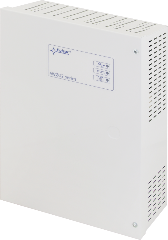 Zálohovaný napájecí zdroj 27,6V/2A s transformátorem a prostorem pro AKU 2x 7Ah splňující požadavky normy EN50131 stupeň 2. Ochrany SCP, OLP, OVP, UVP, tamper - otevření skříně, technické výstupy OC (EPS - porucha sítě AC, APS - porucha akumulátoru).