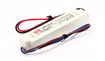Napájecí zdroj LED LPV-18E-12 disponuje vstupním napětím 180 - 264VAC / 254 - 370VDC a výstupním napětím 1,5A/12VDC. Účinnost zdroje je 85%. Ochranu poskytuje OLP, OVP, SCP*. Rozměry zdroje jsou 140 x 30 x...
