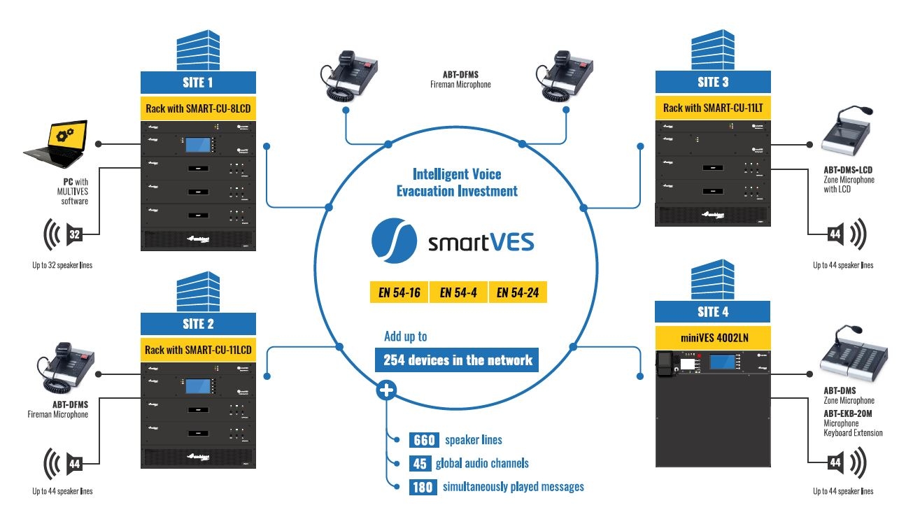 Technologie smartVES od společnosti Ambient představuje inovativní systém veřejného ozvučení a hlasové evakuace, který využívá pokročilé technologie pro zlepšení srozumitelnosti vysílaných hlasových zpráv v budovách s obtížnými akustickými podmínkami. Díky unikátnímu řešení smartVES je možné dynamicky maximalizovat parametr srozumitelnosti řeči bez ohledu na akustické podmínky prostředí, využívající plné technické možnosti reproduktorů, zesilovačů a nastavení signálových procesorů. Systém je navíc vybaven pokročilou metodou auto-kalibrace a mapováním matice měřících mikrofonů do zón reproduktorů, což zjednodušuje a urychluje konfiguraci systému.