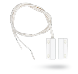 Povrchový bílý 6-vodičový (2 samostané jazýčkové kontakty např. PZTS a MAR) magnetický kontakt s 3m přívodním kabelem pro 2 stupeň zabezpečení dle EN50131, pracovní vzdálenost 30 mm, rozměry 54 x 13 x 13 mm.