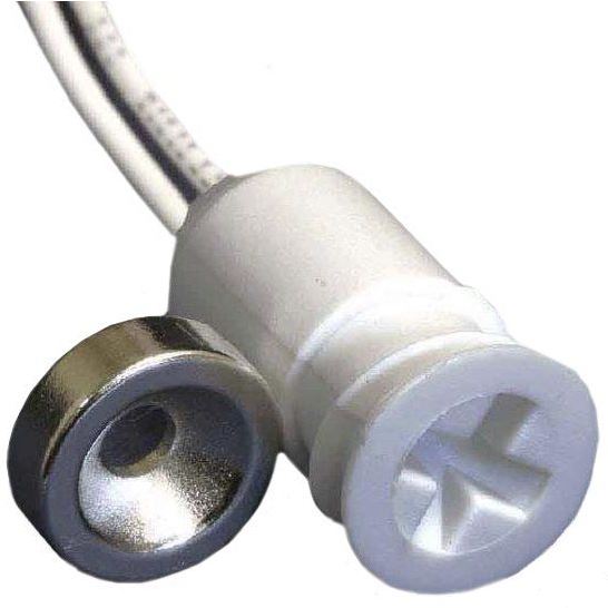 Samozávrtný klínovitý magnetický kontakt je určen pro všechna plastová okna. Už žádný silikon nebo lepidla pro upevnění magnetu v plastových oknech! Délka kabelu u magnetu je 3m. Dvouvodičové připojení.