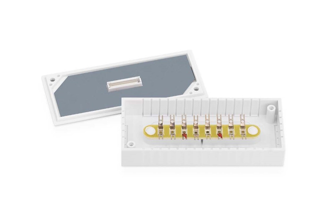 Montážní krabice na omítku s 8 pájecími dvojsvorkami Asita RKZ 111. Ochrana řešena jazýčkovým kontaktem a magnetem ve víku. Rozměr 40 x 95 x 17,5 mm Rozsah pracovních teplot - -40°C až +50°C Relativní vlhkost - max 95%/40°C Krytí - IP 41 Určeno pro napětí Umax - 50V