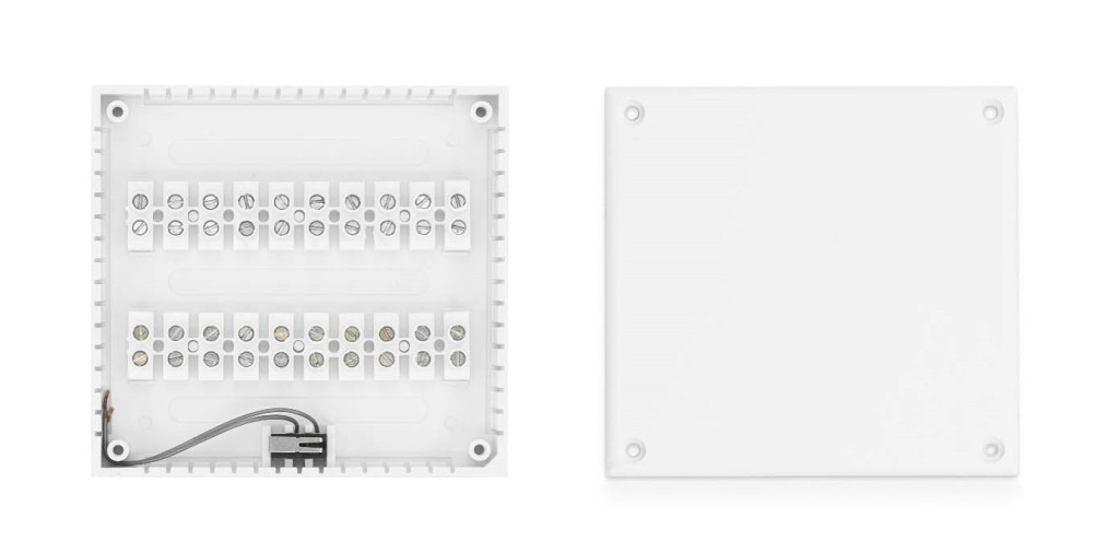 Montážní krabice Asita na omítku s 2x10 šroubovacími svorkami . Tamper ochrana řešena mikrospínačem.